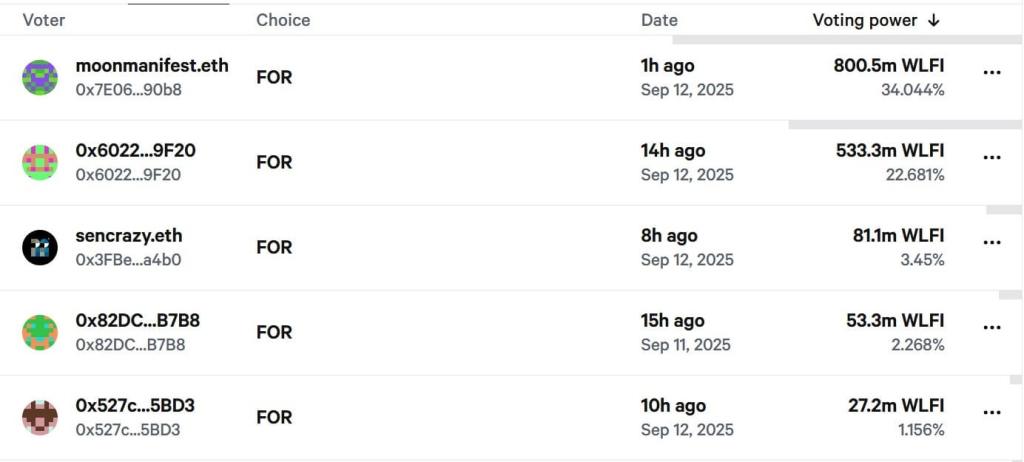 Top 5 Votes For WLFI Burning (Source: WLFI Governance)